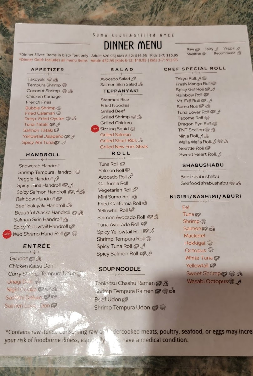 Sumo Sushi & Grill AYCE - Tacoma Menu